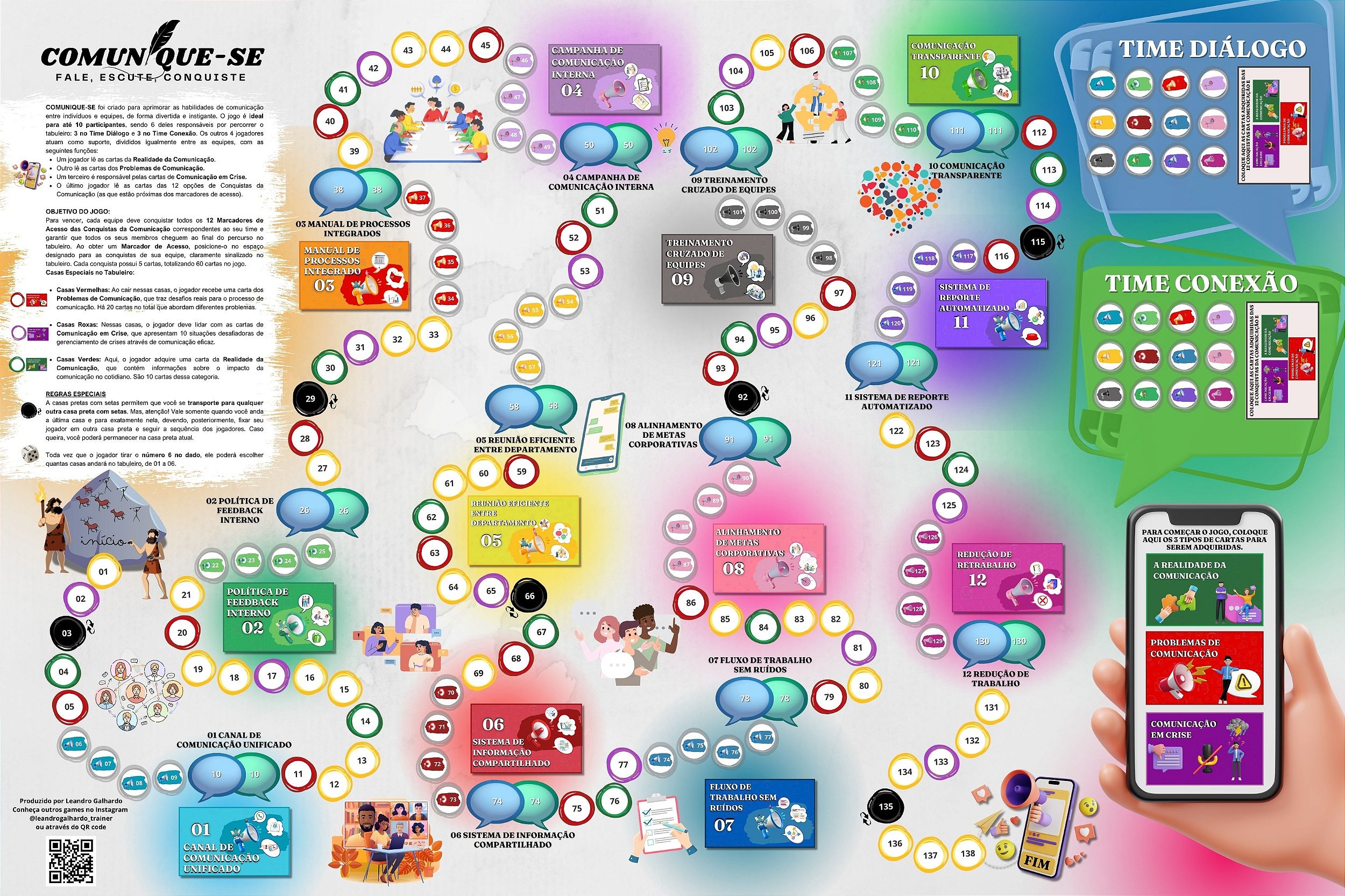 - 60 Cartas de Conquista da Comunicação (12 Conquistas, 5 cartas cada)